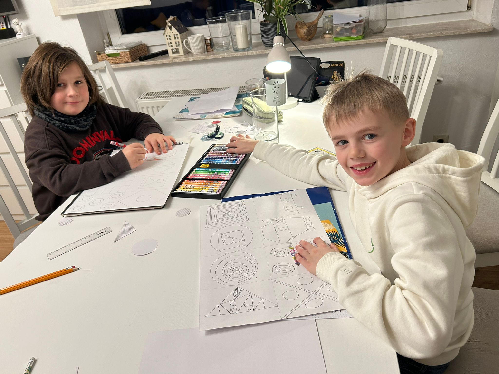 Wiktor und Alexander sind die Spuren der ungarischen Grafiker Viktor Vaserely gefolgt, der in Frankreich studierte und gearbeitet hat. Ähnlich wie Vaserely versuchten die beiden verschiedene geometrische Formen zu erstellen und mit Farben ausfüllen.